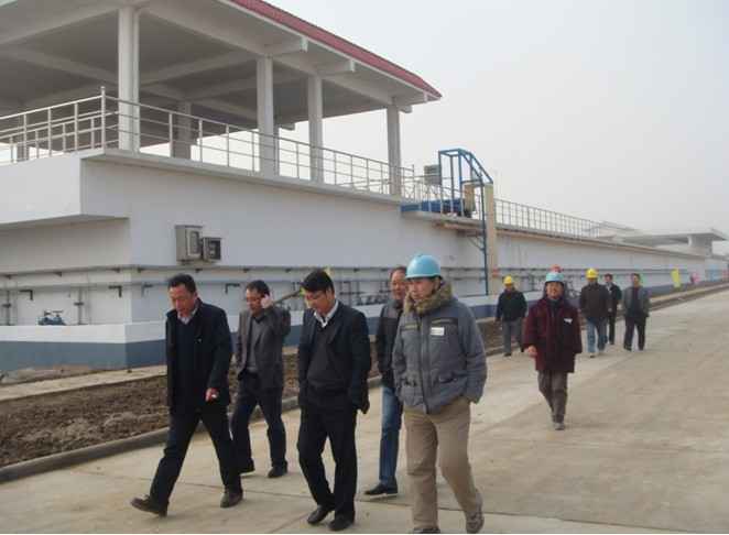 2012年12月3日上午,江苏水务总经理彭云清携江苏水务各分公司领导莅临射阳水厂进行通水前期检查和指导工作。
