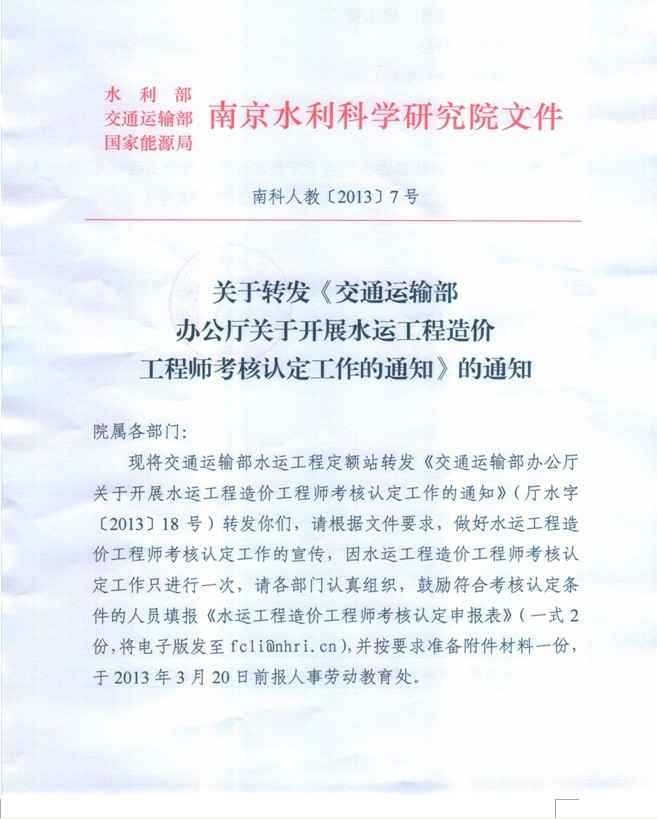 关于转发《交通运输部办公厅关于开展水运工程造价工程师考核认定工作的通知》的通知