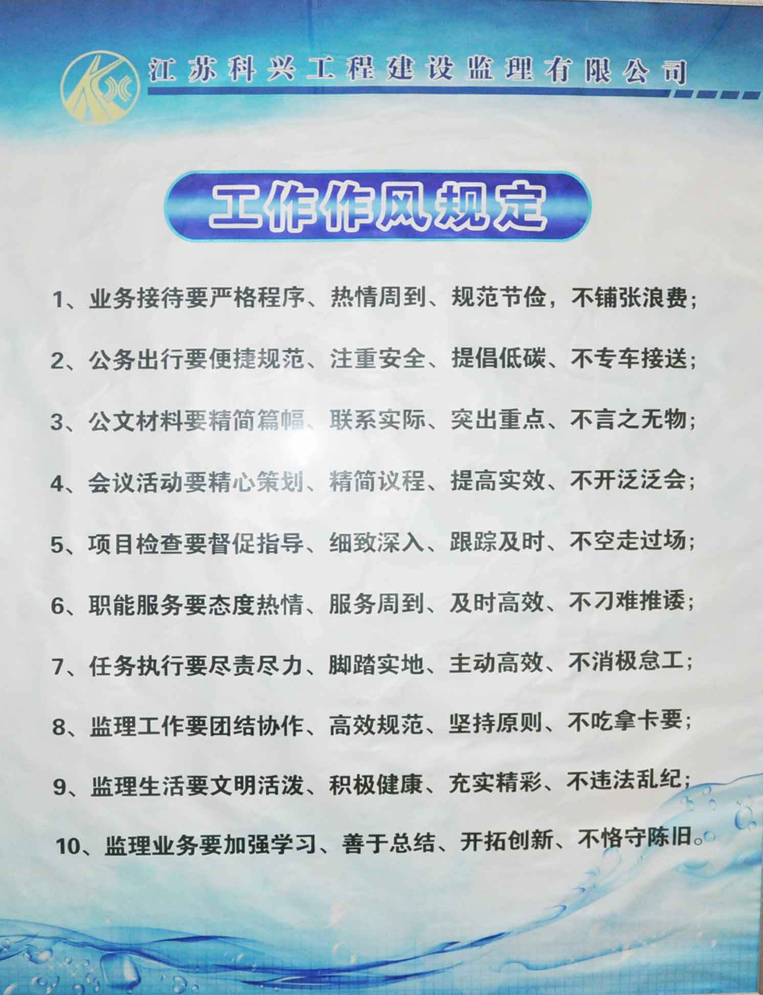 江苏三公(中国)监理公司制定《十项工作作风规定》