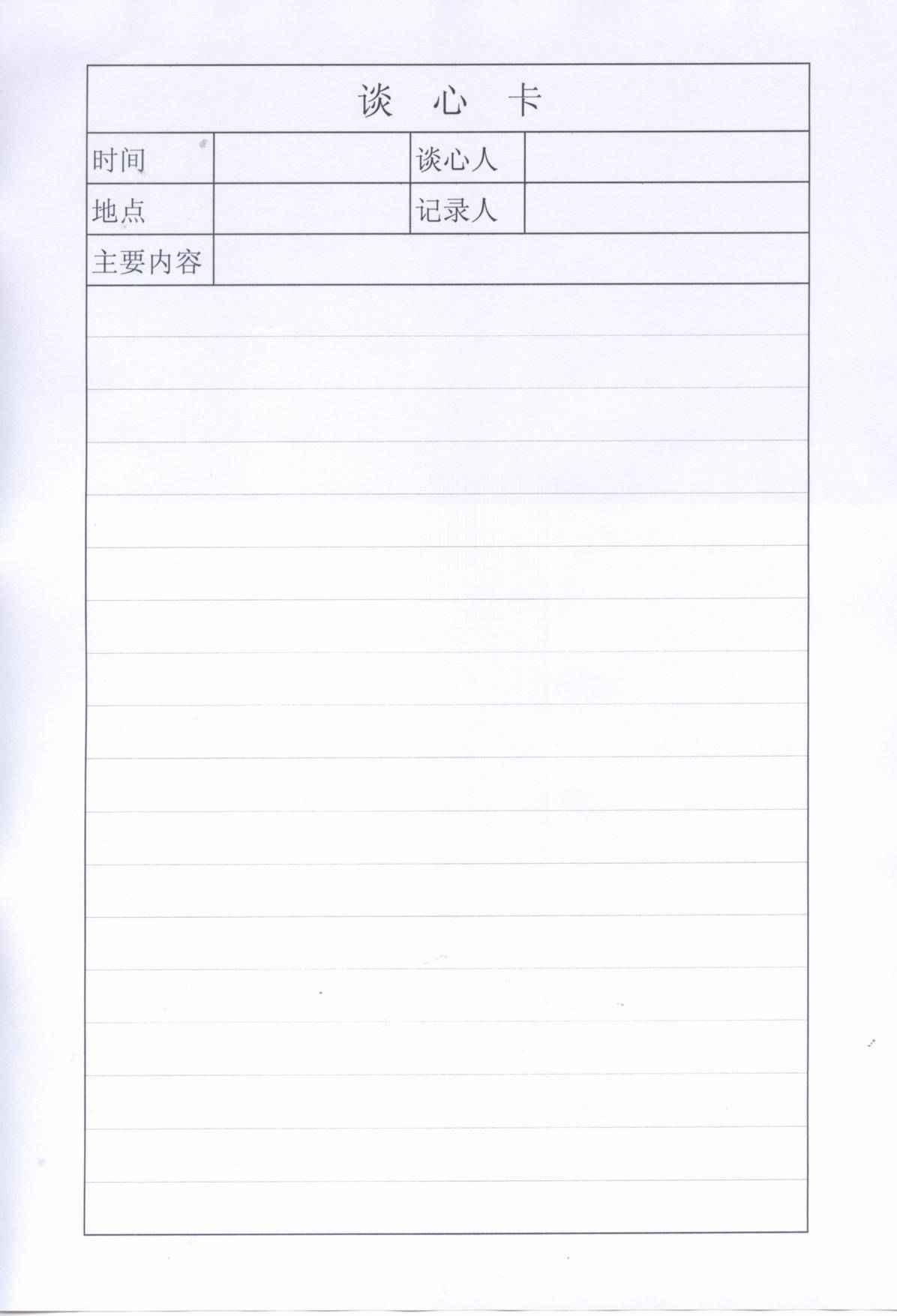 1、公司每个监理组备有谈心记录档案,公司领导与人力资源部单独备存谈心档案。