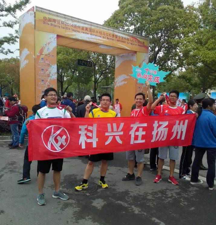 —“三公(中国)”在扬州马拉松纪实 文/魏超 2014年新年过后的某一天,午饭过后,施桥船闸监理部办公室内。总监侯锐似乎有话要说,果真,在惯例的咳了两声之后推了一下眼镜说道:4月20日扬州鉴真国际半程马拉松比赛报名马上开始了,大家有没有兴趣参加。 在全体监理组成员诧异的目光中,他继续说到:在扬州,回忆可以带走,脂肪肝坚决不带走。 在监理组成员肯定的眼神中,侯锐、刘念雨、候力文、魏超产生了报名马拉松比赛的念头。 扬州鉴真国际半程马拉松比赛分半程马拉松,距离21.0975km,10km公路跑、5.6km迷你马拉松三个级别供选择,对于四个人都是第一次想要报名的人来说,必须慎重选择。于是当天晚上有了第一次摸底训练。 第一天的训练最好成绩3km,队员均上气不接下气,明显平时缺乏训练的状态,于是产生了报名5.6km与10km两种不同意见,无疑5.6km已是不短的距离,加强训练应该可以达到。10km虽然很遥远,但却是一种希望。在经过一阵无法决定的沉默后,侯总监一拍桌子:就报10km的,不逼自己一把,你就不知道自己有多强。每个人自愿参加,以个人名义训练及参加比赛。 10分钟后,报名参赛队员签署了参赛声明,声明每位队员均以个人名义自愿参加马拉松比赛。 20分钟后,报名选手完成了网上报名。 30分钟后,在侯总请教了专业队员后,一份扬马10km训练计划张贴上墙了。 四位队员站在一起看着训练计划,激情在燃烧,热血在沸腾。 虽然工作紧张,每天工地奔波已非常疲惫,但是每位队员从没有放弃过训练,员工休假期间也不忘训练,侯总远赴桂林参加培训,行囊内专程带上了跑鞋。 训练是枯燥的,痛苦的,3km,5km,6km,8km,10km;80min,70min,60min,50min,一点一点的增加训练量,成绩一步一步的提高。那些日子,大家工作也有精神了,饭量也都增加了,伙食费明显的不够吃的了。想要减肥的瘦了,想要增肥的胖了。侯总讲话的时候很少再咳两声而是直接推一下眼镜了。 4月20日,终于迎来了扬马比赛的日子了,好几天前,就已经将比赛的衣服鞋子刷洗干净了,厨房烧饭的王师傅这几天也想着给大家增加营养。作为比赛队员更是格外的兴奋。早上5点钟,就全部起床了,吃完早饭,赶赴比赛现场。 为展示三公(中国)公司形象,弘扬三公(中国)公司文化,队员们打着“三公(中国)在扬州”的条幅淹没在人海中。 比赛过程中,几万人同时起跑,CCTV5全程直播,沿途扬州百姓夹道加油,从起点到终点从无间断。运动员们个个信心十足。比赛中也有满头大汗难以坚持的时候,也有疲惫的想要停下来的时,当看着运动员中有满头白发的老人也有稚气的孩童,看着沿途喊加油的热情的扬州市民,有什么理由停下来呢,于是又加快了前进的脚步。 最终,四名代表的“三公(中国)”的参赛队员均以理想成绩完成了比赛,当拿到奖牌的时候,那种激动的心情是难以言表的。总结成一个字就是:值。总结成一句话就说:明年我们还来! 明年“三公(中国)”的旗帜在赛场上一定会更加耀眼,因为那时候一定队伍一定会更加壮大。