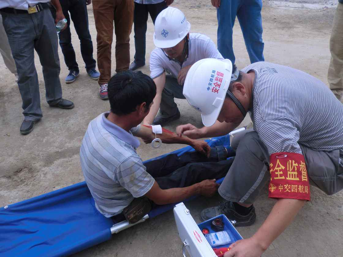 生命重于泰山,安全高于一切。为了营造良好的安全氛围,提高全体参建人员的安全意识和掌握突发事件的应急救援能力,监理部联合项目部于2014年6月14日下午,由监理部及项目部安保部组织,在船闸主体工段进行了高空坠落、物体打击事故应急救援演练,并取得了圆满成功。驻地办莅临现场并对演习进行了点评,并提出了宝贵意见。 本次应急救援演练,从发现人员受伤到进行简单处理后抬上救护车,整个过程历时仅10分钟,及时有效的控制了人员的伤势,为人员的后续救治工作赢得了时间。此次演习检验了项目应急救援小组应急救援的能力,确保有突发事件发生时有能力对事故进行有效地控制和处理,为工程安全生产提供有力保障。(周监清)