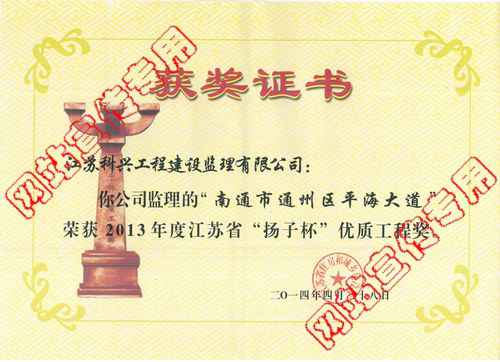 > 企业荣誉 > 南通平海大道“扬子杯”