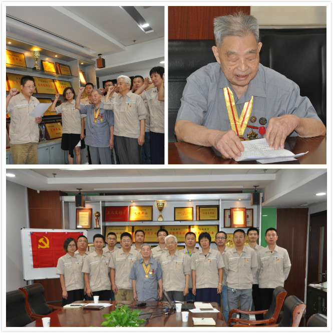 为深入学习贯彻习近平新时代中国特色社会主义思想和党的十九大精神,教育引导全体党员“不忘初心,牢记使命”,根据院党委的统一部署,2018年7月27日下午,现金三公官网党支部开展“不忘初心,重温入党誓词”主题党日活动。活动有幸请到了91岁高龄的新四军抗日老战士杨义成给全体党员讲党课。公司支部书记、总经理徐志峰参加并主持。