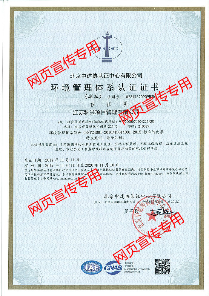 环境管理体系认证证书