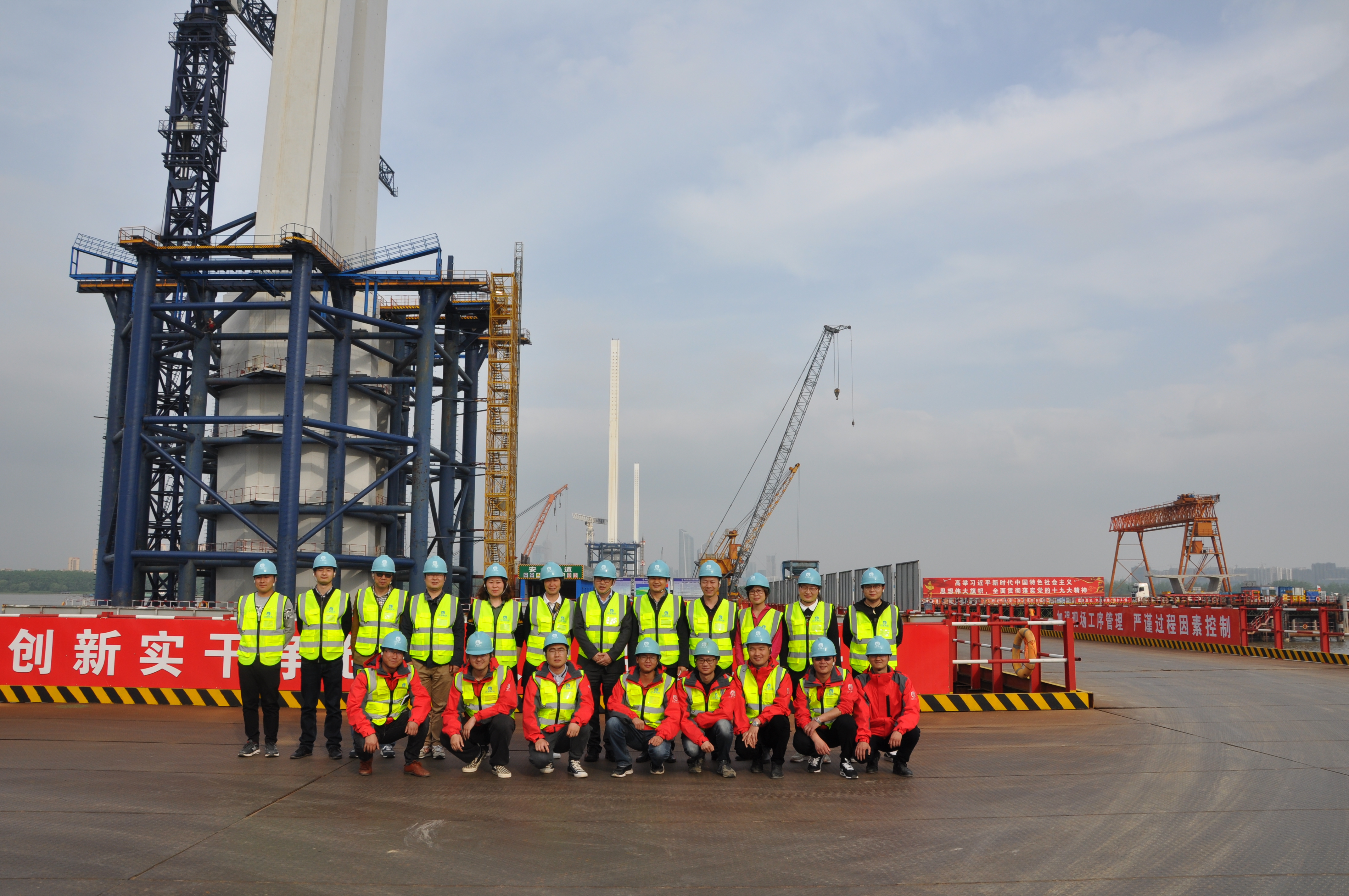 总经理徐志峰一行首先参观了南京长江第五大桥北主桥施工现场,在五桥安全中心现场负责人的介绍下了解南京五桥的工程概况和先进的施工工艺,并登上28.5m的电梯平台近距离参观主塔建设情况。随后徐志峰总经理一行前往南京五桥安全中心办公驻地,与安全中心全体成员进行亲切座谈。安全中心成员依次汇报了近期工作情况及工作心得,各部门负责人先后对南京五桥安全中心后期工作提出建议。