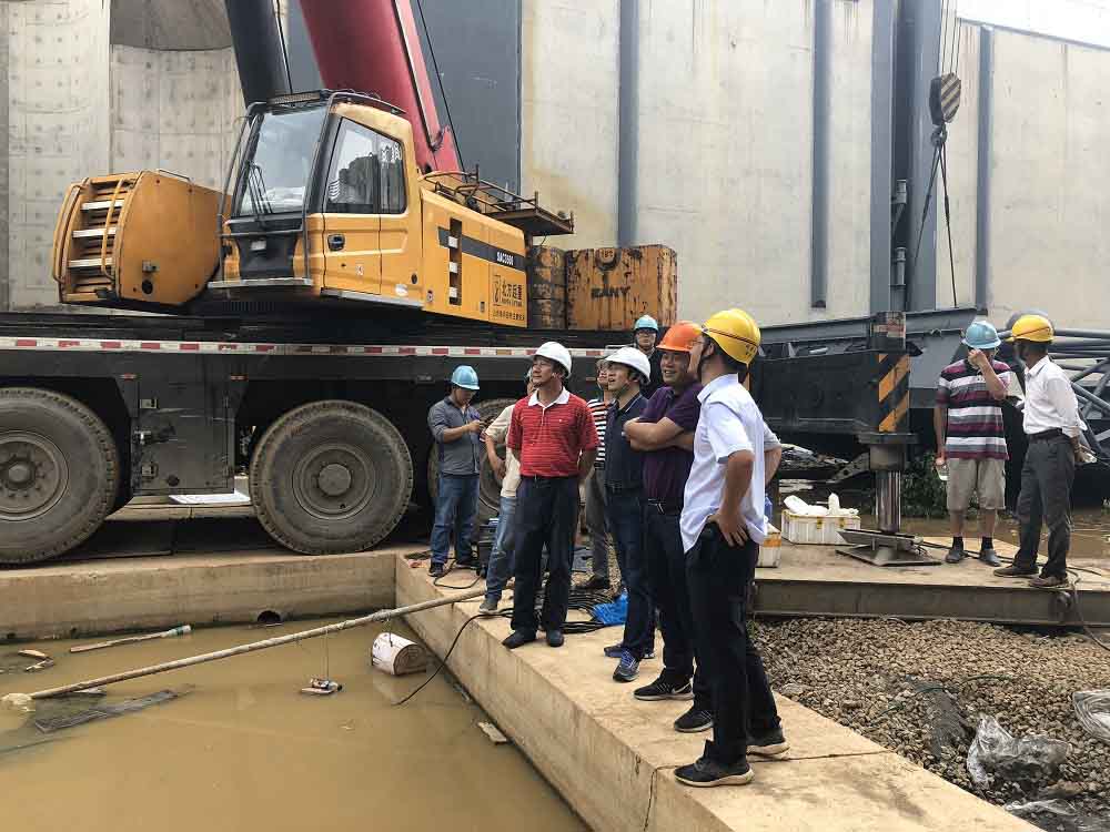 2019年8月19日,现金三公官网承监的秦淮河航道整治工程洪蓝船闸闸门门体安装工作顺利完成。8月18日,南京市航道管理处副处长张久洪一行莅临闸门吊装施工现场进行指导、检查,要求现场监理人员要做好吊装前的安全准备和吊装过程的旁站工作。