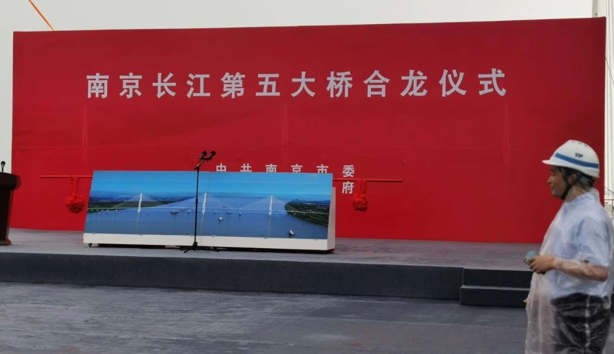 2020年6月28日上午,在南京长江第五大桥建设工地,随着江苏省委书记娄勤俭的正式宣布,最后一盘粗骨料活性粉末混凝土缓缓浇入横向湿接缝中,世界首座轻型钢混结构斜拉桥——南京长江第五大桥跨江主桥顺利合龙。