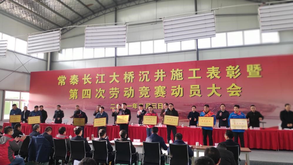202123日,立春,常泰长江大桥沉井施工表彰暨第四次劳动竞赛动员大会在泰兴胜利召开。会上,江苏省交通工程建设局、江苏海事局对一年多来在常泰长江大桥主塔沉井基础建设过程中作出突出贡献和取得优异成绩的单位、集体和个人进行了联合表彰,常泰桥指对第四次劳动竞赛作了动员。省交建局局长蒋振雄、江苏海事局副局长徐伟、中国工程院院士秦顺全等领导、专家出席会议。