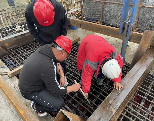 为保证两渡槽主跨的顺利合龙,合龙施工准备过程中,监理部与施工方多次组织方案研讨,采用临时刚性骨架锁定,通过连续观测环境温度、梁体温度和合龙口高差数据,记录昼夜温差带来的热胀冷缩变化,确定最佳时机,为施工提供科学技术支撑。监理部负责人科学组织,认真检查每一道工艺流程;技术人员严格检查钢筋绑扎间距、保护层厚度等,确保工程严格按照设计图纸及规范要求;安全监理员严格巡视旁站,督促加强高危作业防护。