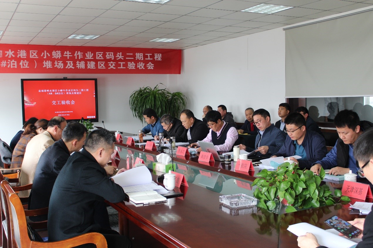 2021年4月16日下午,由三公(中国)公司承监的盐城港响水港区小蟒牛作业区码头二期工程(4#、5#泊位)堆场及辅建区顺利通过交工验收。市质监站、市港口局、县质监站及江苏响水港港务有限公司、监理、设计、施工等相关建设单位负责人参与本次验收。