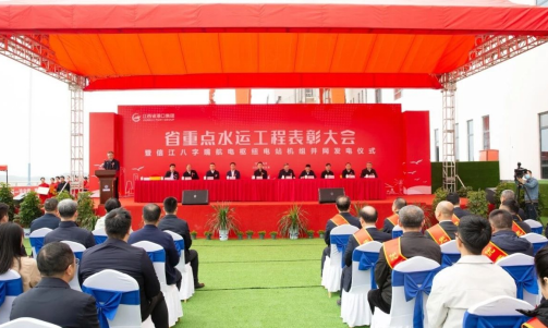 2023年3月28日,江西省交通厅在信江八字嘴航电枢纽项目现场召开全省重点水运工程表彰大会暨信江八字嘴航电枢纽电站机组并网发电仪式。江西省交通厅党委书记、厅长王爱和、副厅长丁光明等出席仪式。