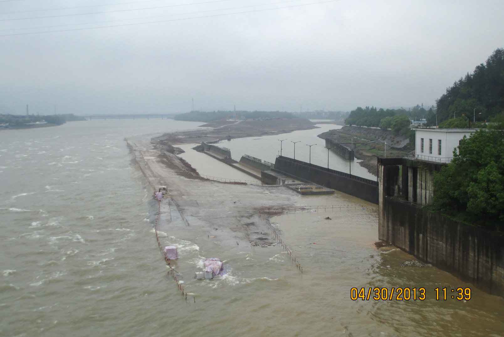 4月30日,由于近期上游持续强降雨,富春江大坝开闸泄洪。开度1m共开启8孔,流量3770m3 /s,连续泄洪48小时,围堰经受住了第一次洪水的考验。 富春江船闸扩建改造工程临时围堰设计标准为10年一遇非汛期洪水标准,总投资8千余万,自去年10月份开工以来,经各参建单位的共同努力,于今年3月底顺利完成。