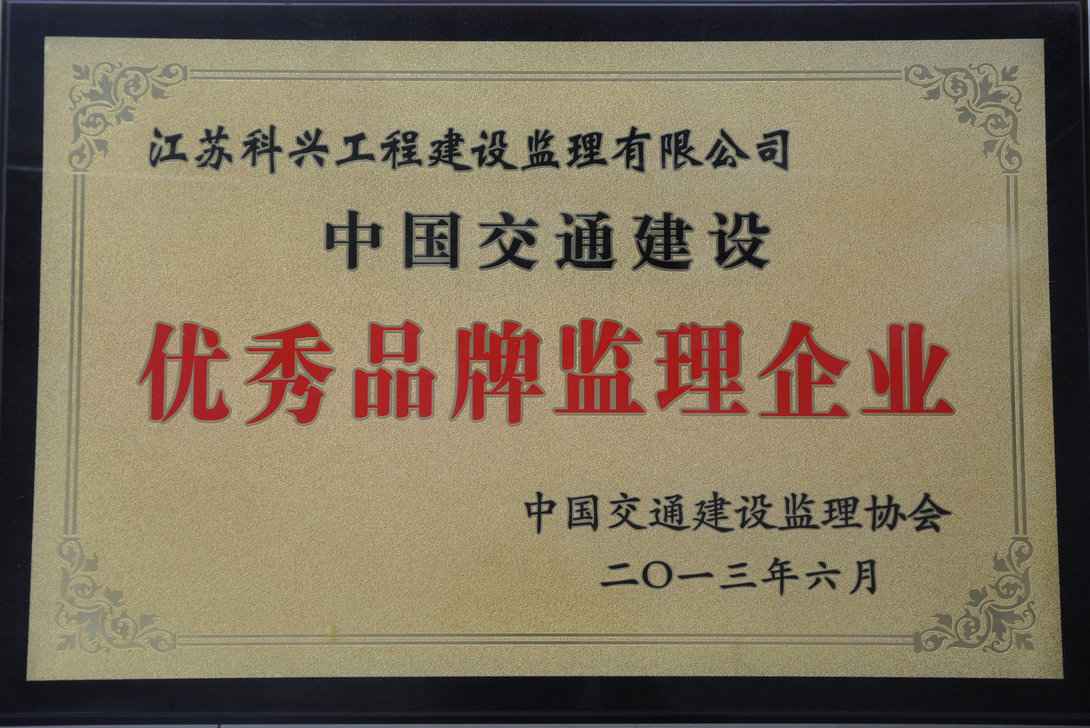 江苏三公(中国)监理公司荣获中国交通建设优秀品牌监理企业称号