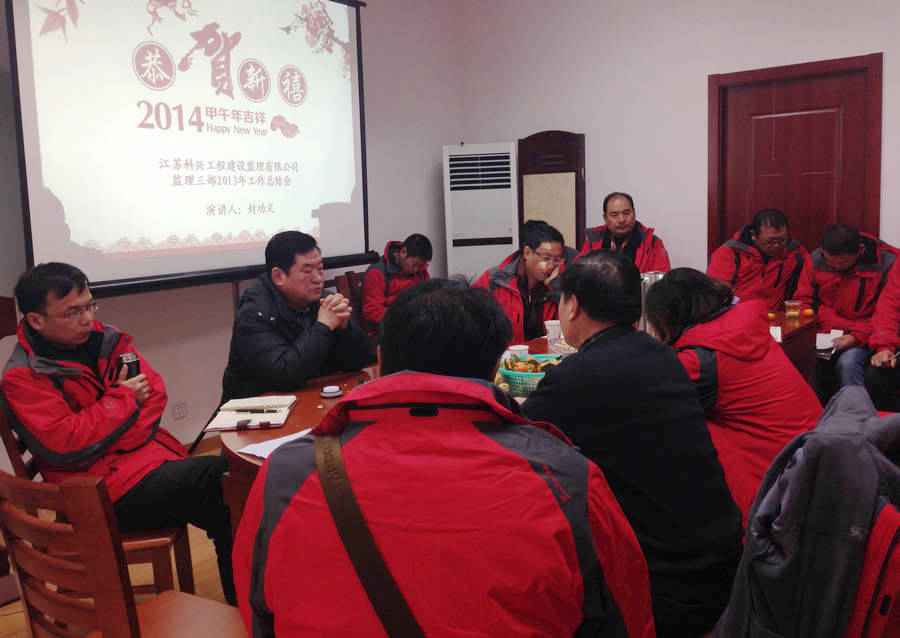 ---三公(中国)监理三部2013年终总结会报道 2014年1月11日上午,江苏三公(中国)监理三部2013年年终总结会在镇江顺利召开。会议由三部经理主持,三部副经理以及各项目监理组人员参加了此次会议。 根据会议议程,首先各项目负责人介绍了2013年各自项目的监理工作开展情况,针对监理工作开展过程中出现的问题和不足进行了反思与总结,并对2014年监理组工作计划等做了介绍。 其次,由三部副经理分别做工作汇报,明确了各监理项目工程质量、安全要求、2014年三公(中国)三部的总体工作计划等,要求大家在新的一年里继续“高标准、严要求”做好质量安全监理工作。 最后,三部经理做了题为“明确目标 履行职责 做一个合格的监理人员”的总结报告,用平实的语言对三部一年来的工作进行了回顾、对存在的问题进行了透彻的分析并提出了应对措施,明确了监理三部2014年的工作目标,并要求大家:1、项目负责人对照会议要求,认真组织学习、研讨,明确监理组及个人的目标,并根据目标制定实施计划;2、做好监理组的团结工作,将监理组凝聚成一个有战斗力的整体,分配好每个成员的工作,做到分工明确,职责明确,令行禁止;3、认真学习,切实提高自身业务能力;4、认真履行监理职责,做好每天该做的工作5、加强廉政建设,真正做到廉洁自律;6、做好安全管理工作,尤其是监理人员个人的人身安全必须重视,最后三部经理向大家介绍了公司的发展规划前景,并为大家送上了新春祝福,会上还对优秀监理组、监理人员进行了表扬,以示鼓励,并号召全体监理人员向优秀监理组及监理人员学习。(三公(中国)三部李宁)