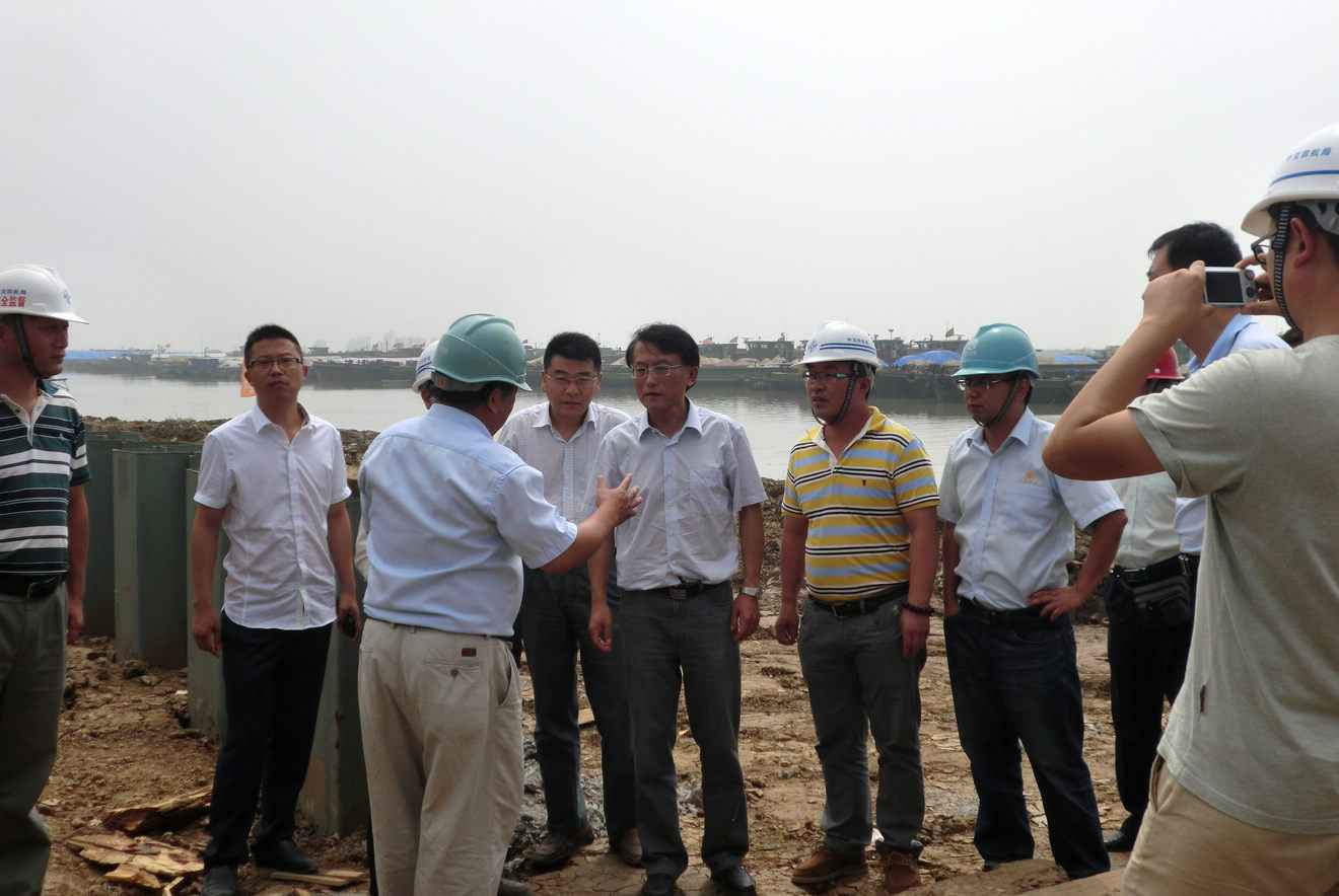 2014年7月9日,省航道局丰玮副局长在淮安市航道处鲍处长等人的陪同下,莅临淮河出海航道高良涧船闸扩容工程现场检查指导工作。 丰局长一行检查了船闸施工现场,特别对上游锚地双排钢板桩施打工艺及成果进行详细了解,并给予高度评价;对高良涧船闸监理部管理状态、管理力度给予了肯定。最后要求参建各方精细管理、苦干巧干、狠抓安全、质量,力争明年年底交工通航。(周监清) |