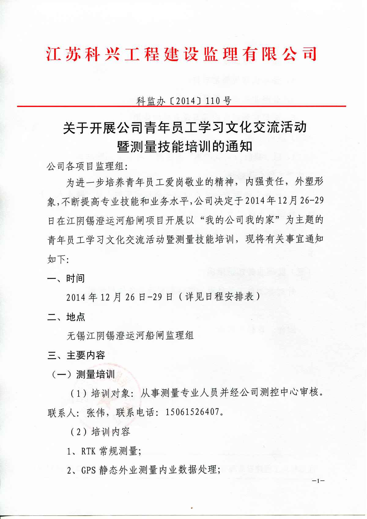 关于开展公司青年员工学习文化交流活动暨测量技能培训的通知