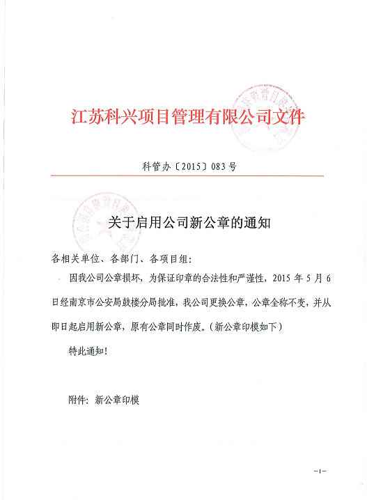 > 通知公告 > 关于启用公司新公章的通知