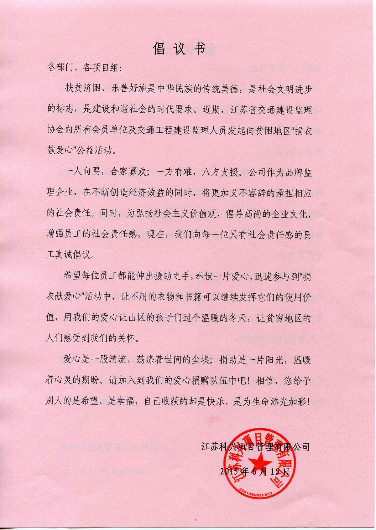 > 企业新闻 > 倡议书