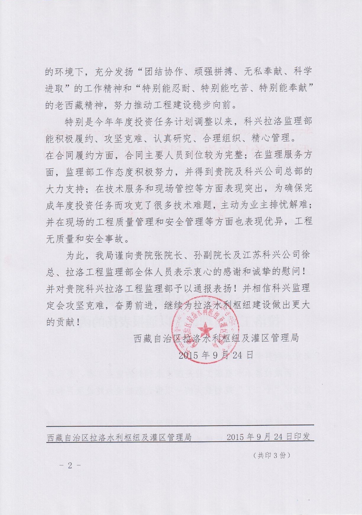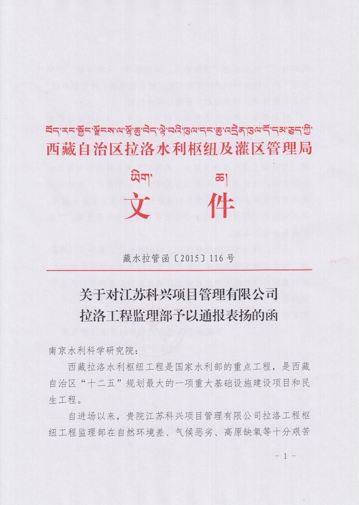 > 企业新闻 > 西藏拉洛工程监理部受业主通报表扬