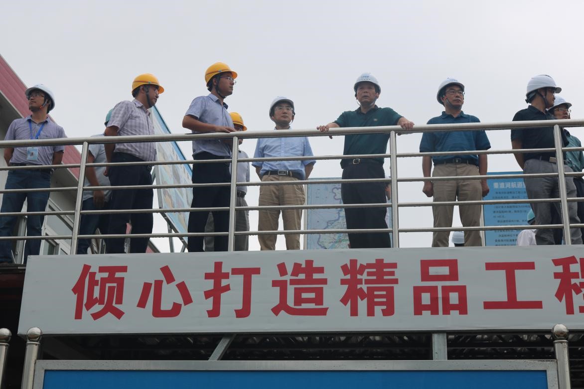 2017年8月8日下午,江苏省交通运输厅副厅长丁军华等一行视察了秦淮河航道工程工地现场并慰问各参建人员。 在洪蓝船闸项目部,丁厅长一行与大家进行了亲切地交流,仔细询问了大家的工作、生活情况,并代表交通运输厅对各参建人员不畏高温仍然奋斗在一线的精神表示赞赏,并叮嘱大家要注意防暑降温、劳逸结合。同时丁厅长指示全体参建人员要克服困难,迎难而上,努力将秦淮河航道工程打造为“品质工程”。 |