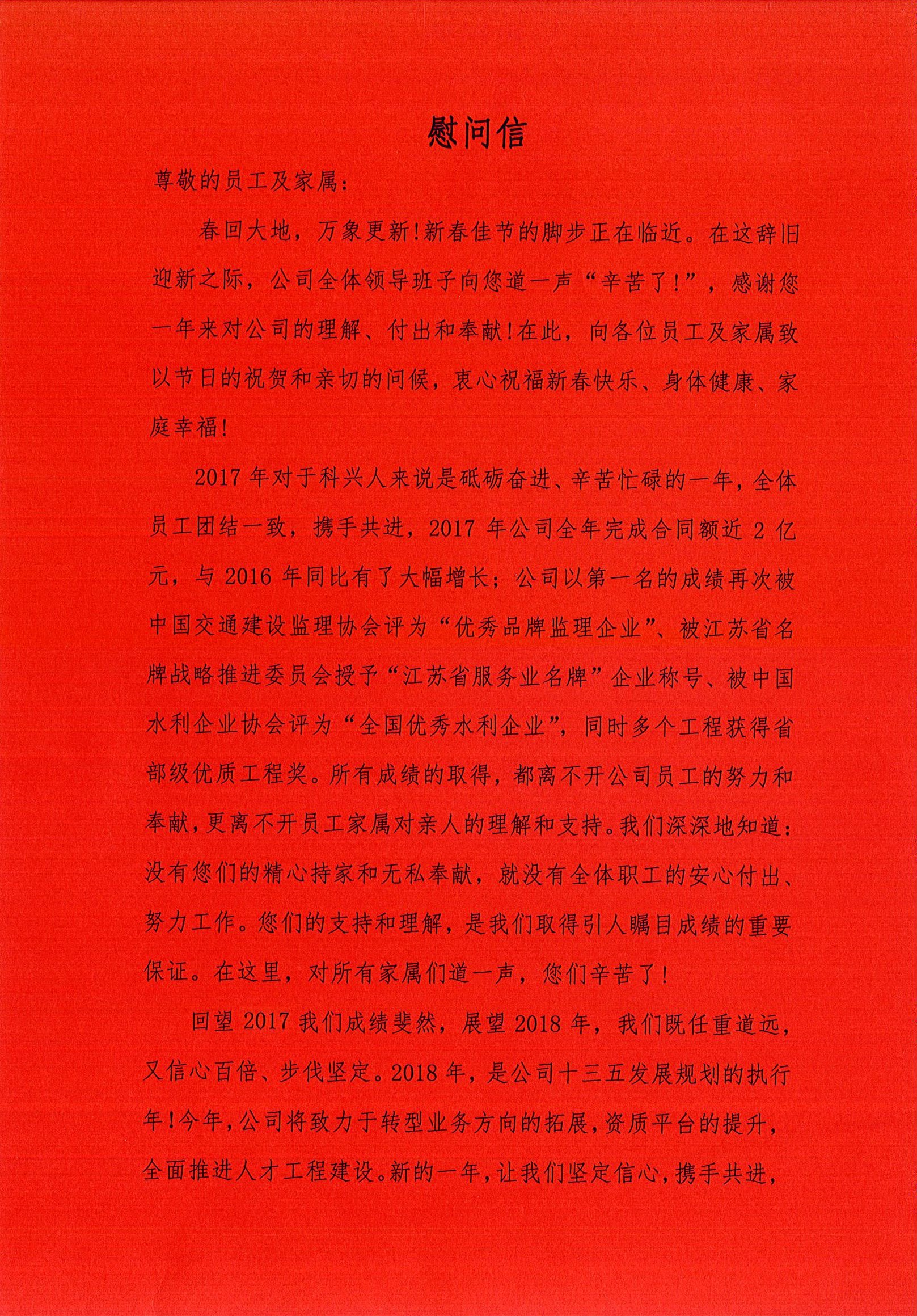 > 企业新闻 > 慰问信