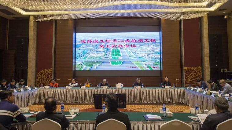 2018年12月20日,九圩港二线船闸交工验收会议在南通顺利召开,项目各参建单位齐聚一堂,江苏省交通运输厅总工程师惠先宝、南通市副市长陈晓东出席,江苏三公(中国)总经理徐志峰参加会议。