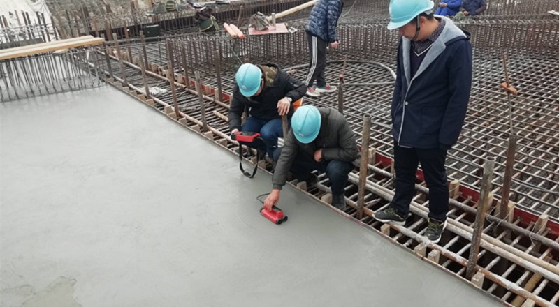 首块底板浇筑过程中,施工班组夜以继日挑灯夜战,三段底板浇筑历时达77个小时,累计方量2700余方,这对于参建各方人员的沟通、材料的准备、设备的协调都是一项艰巨的考验。在此过程中,总监办领导带队轮班值守,总监办按照QC工作流程对顶面混凝土浇筑面进行控制,抽查混凝土与主筋间距离,试验工程师对二次收面后钢筋保护层进行预测预控。