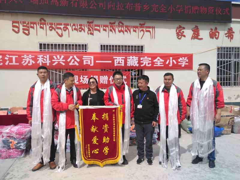 2019年8月30日,现金三公官网总经理、瑞迪高新有限公司董事长徐志峰一行带着100余册小学生读物、千余件御寒衣物、江苏三公(中国)为孩子们准备的268个新书包、数万元现金以及所有员工满满的心意,前往西藏自治区南木林县拉布普乡完全小学,进行现场捐赠公益。南木林县教育局副局长巴桑普赤,拉布普乡党委书记桑杰,完全小学副校长珠加一同出席了此次活动,并向公司赠送锦旗表示感谢。